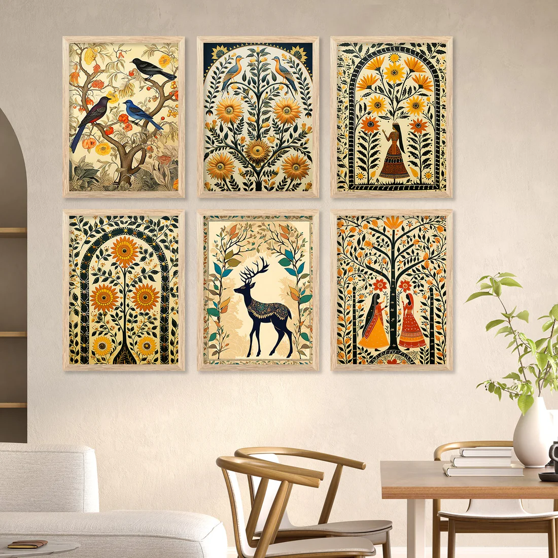 Pichwai Art Framed Wall Paintings Set of 6 for Home Decor | Traditional Indian Canvas Wall Art